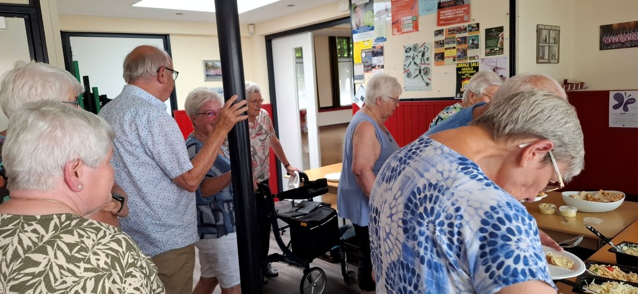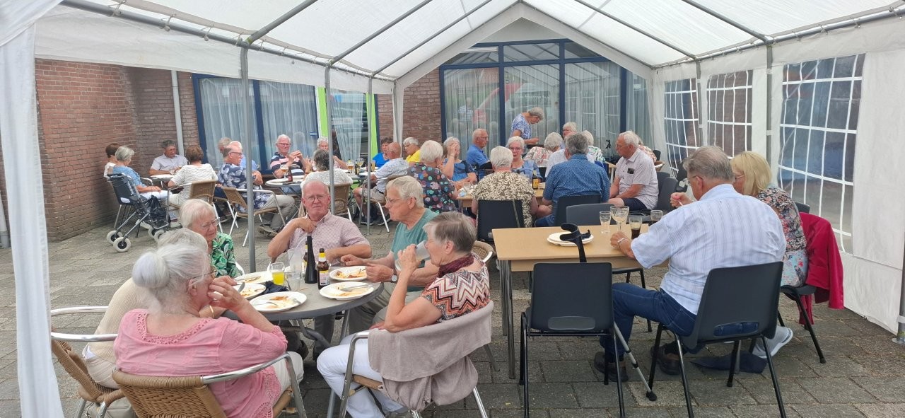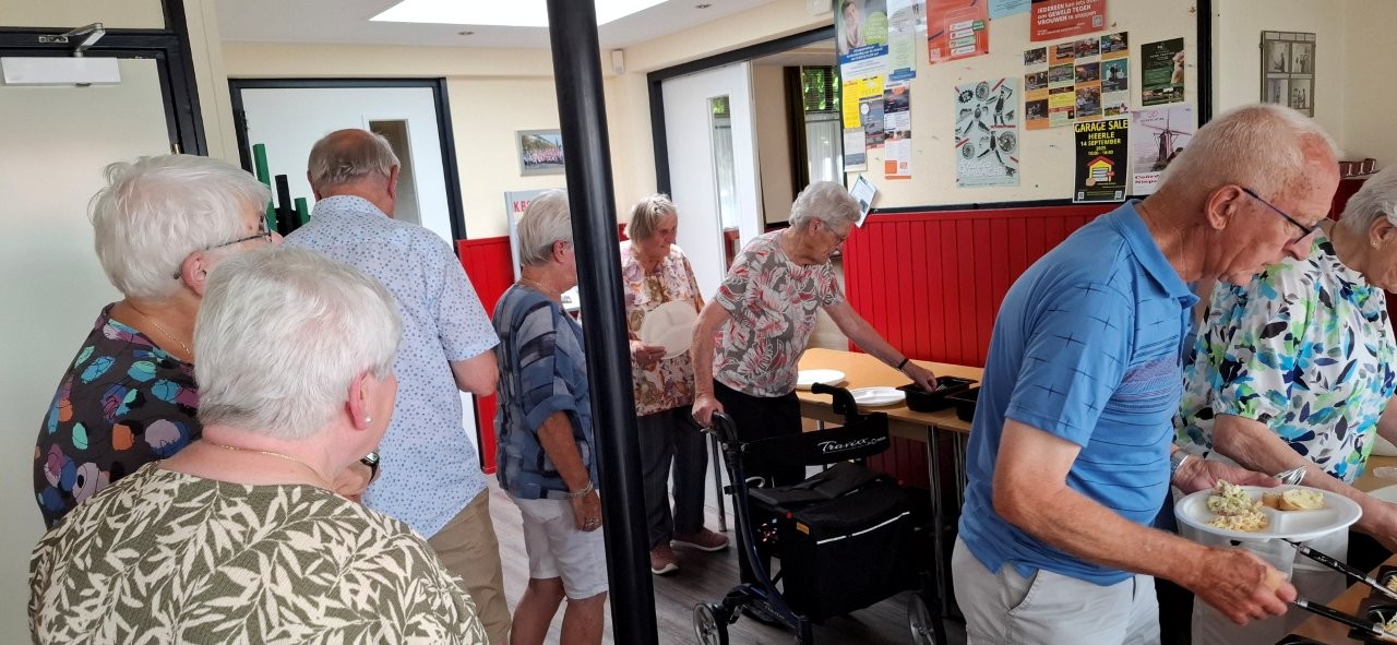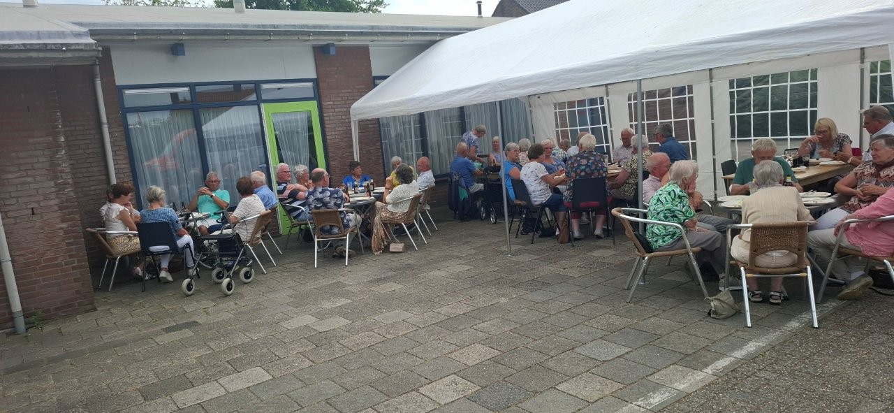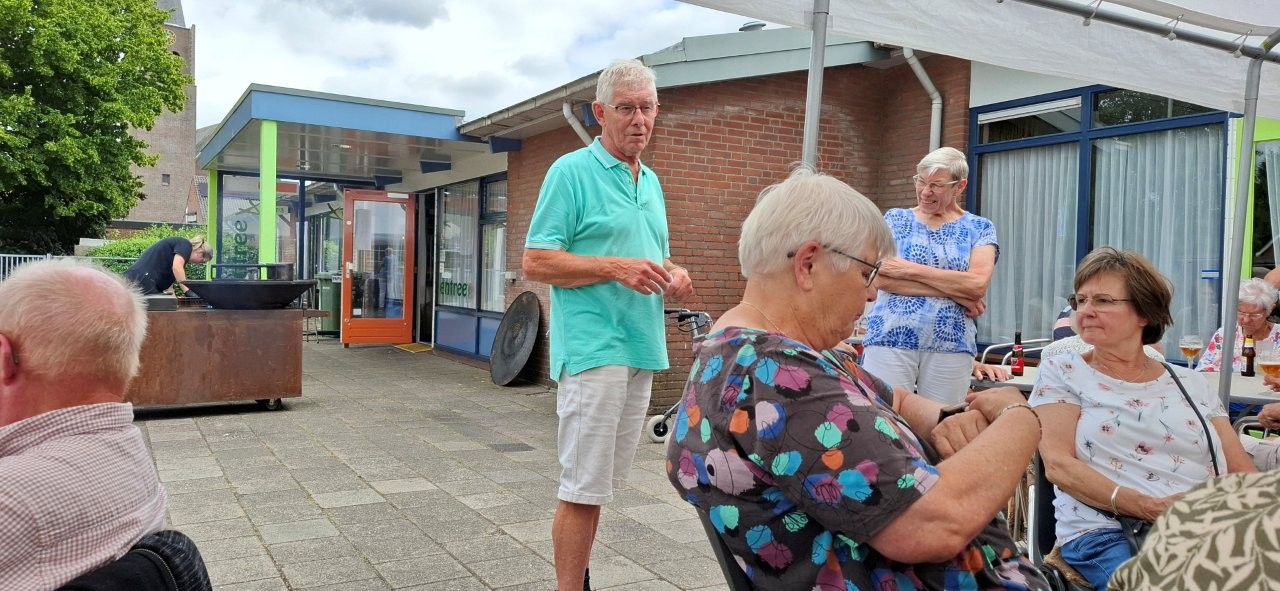 Na het nuttigen van de salades, het heerlijke door de slager klaargemaakte vlees en het inmiddels traditioneel geworden toetje nog even onder het genot van een drankje wat nakletsen.